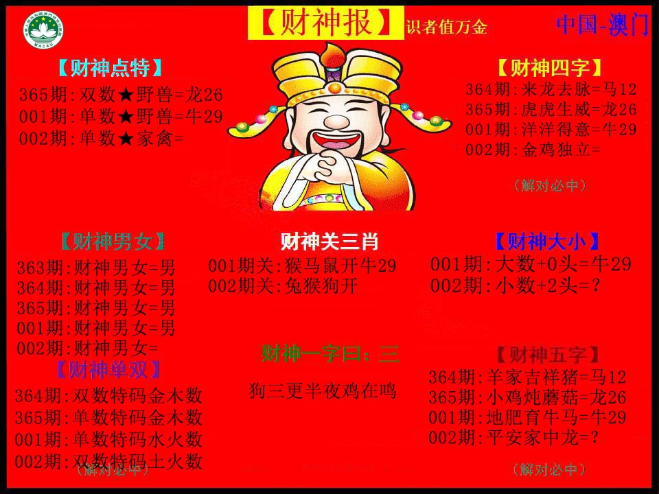 002期:澳门六合彩彩圖信封【红财神报】每期自动更新