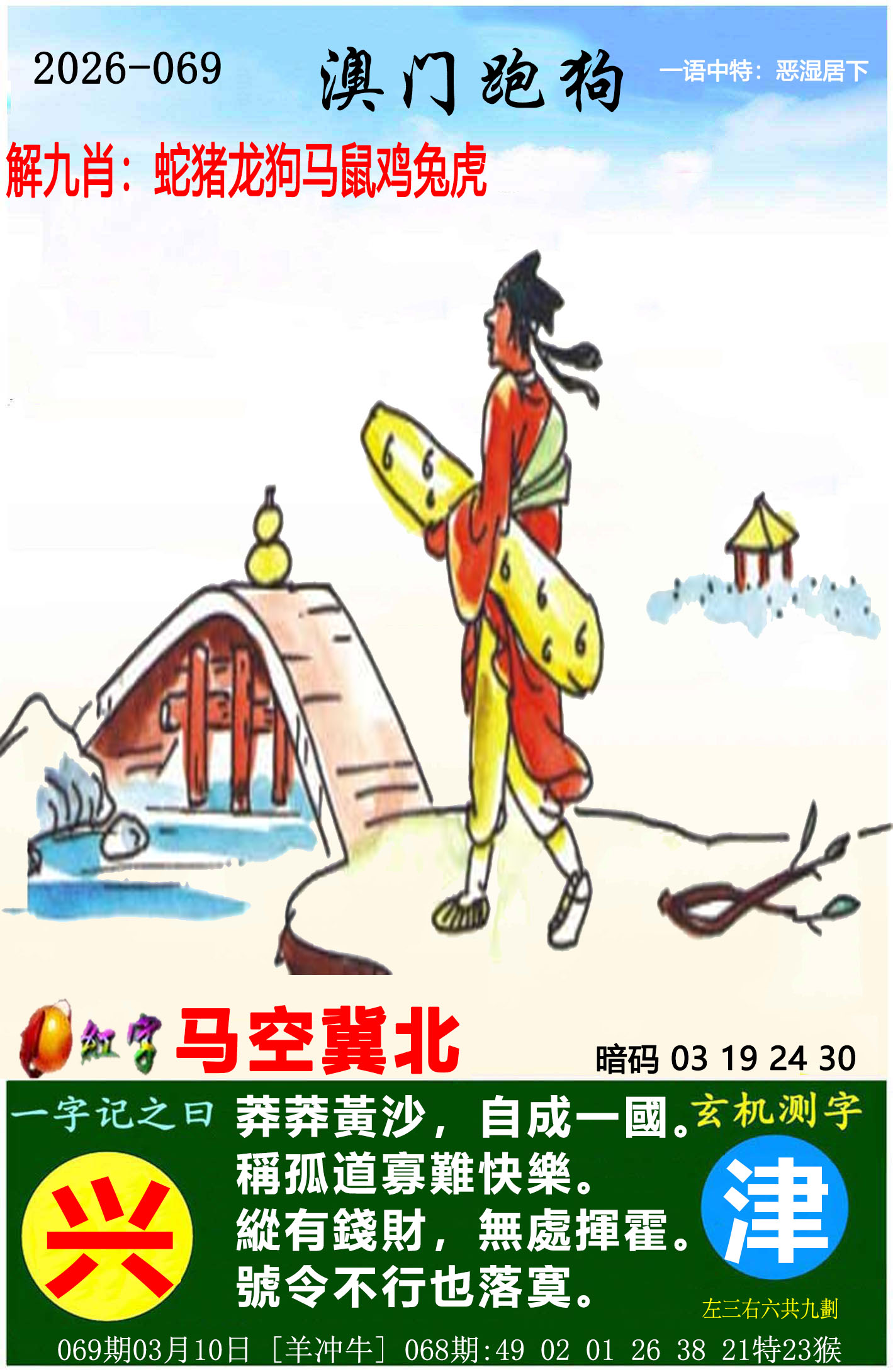 | 068期:九肖 | 龙蛇兔虎羊鼠猪马猴 | ?00中 |