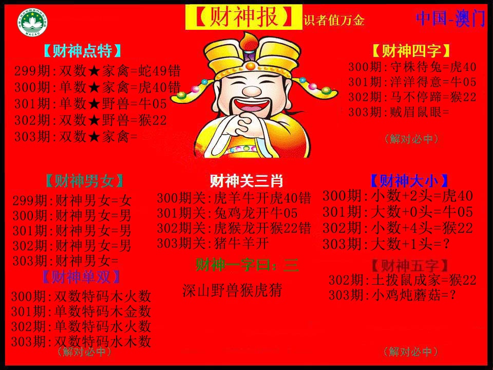 303期:澳门六合彩彩圖信封【红财神报】每期自动更新